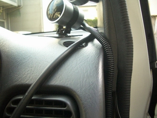オートゲージ製でdefi風のブラックフェイス(自光式)です。 |